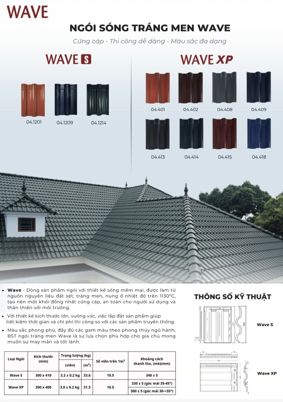 Ngói tráng men WAVE XP cứng cáp, thi công dễ, màu sắc đa dạng